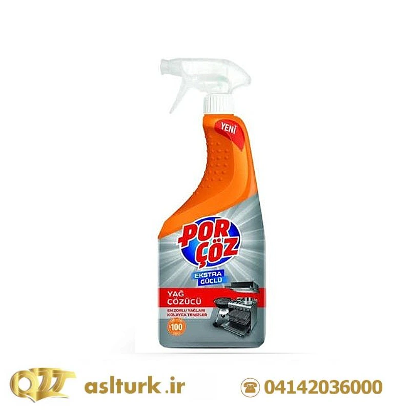 اسپری پاککننده گاز و فر پورچوز (Porçöz) با حجم ۷۵۰ میلیلیتر یکی از محصولات قوی و مؤثر برای تمیز کردن چربیهای سخت و سوخته از سطوح آشپزخانه است.